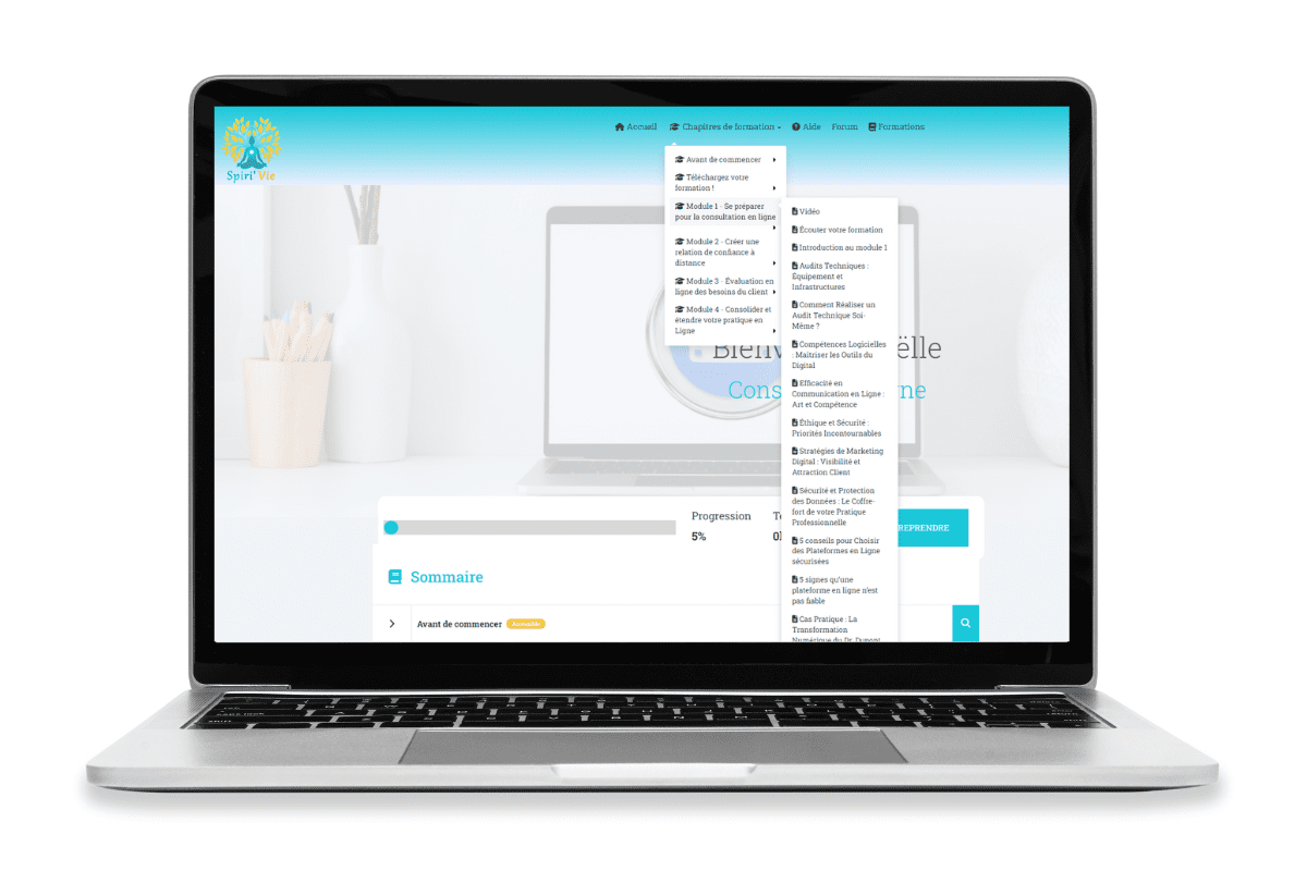 Bienvenue dans le premier module dédié aux praticiens du bien-être. Dans ce voyage d’apprentissage, nous allons explorer ensemble des territoires essentiels pour maîtriser l’art de la consultation en ligne, un domaine en pleine expansion et riche en opportunités.